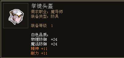 神鬼幻想学徒头盔属性介绍,学徒头盔的属性是魔法防御、物理防御、精神和耐力,好吧,加的都是一些次要的属性,不过这些属性堆高了还是蛮有效果的。