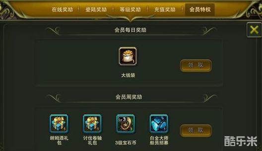 会员周奖励:朗姆酒礼包*1、讨伐卷轴礼包*1、3级宝石币*1、白金大师船员招募卡*1。