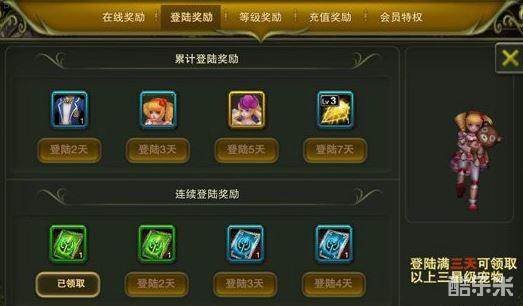 玩家累计登陆游戏到达一定的天数,就可以领取一些特定的奖励。