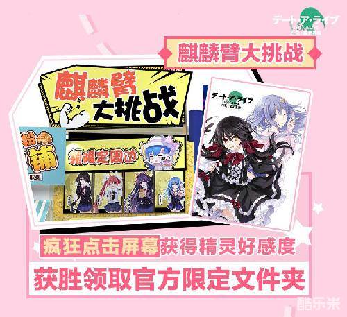 在展台的背面是一块60寸的超大触摸屏,我们会利用这个触摸屏让各位和精灵妹子们来个亲密“接触”,我们称之为-麒麟臂大挑战!游戏玩法非常简单,只要触摸屏幕上的精灵,就可以增加妹子的好感度,触摸速度越快,好感度增加得也就越快,在规定时间内让好感度达到满点,即为游戏成功。是不是非常符合那句“与其约会,使其娇羞”呢,快来祭出你的麒麟臂,赢走官方限定文件夹吧!