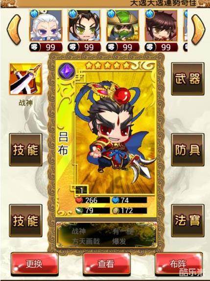 技能:每位武将除了天生的技能之外,另外有两个技能栏位可进行装备。