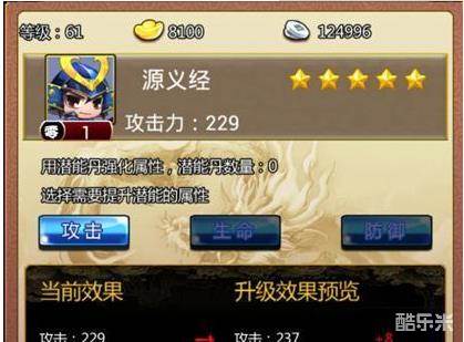 玩家可利用潜能丹强化武将属性,有攻击、生命、防御三个选项可供选择强化,强化除了必须需消耗5潜能丹外,还需花费一定金额银两。
