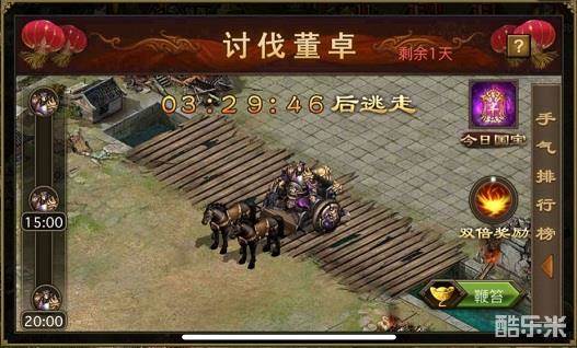5、每日10点、15点及20点刷新鞭笞董卓资源,鞭子、金币消耗及国宝每日0点重置;