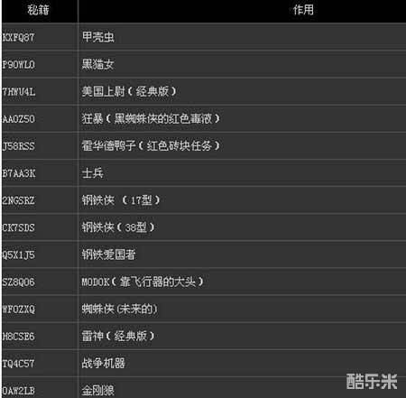 今天小编要为大家带来的是乐高漫威超级英雄作弊码大全,乐高系列游戏一直是非常经典非常友爱的游戏作品,可爱的角色和幽默的游戏内容对玩家来说不是游戏,而是一种享受,下面是这款游戏的几个秘籍,有兴趣的玩家可以试试。