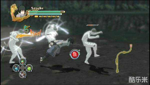 Step5:剧情省略此时更换为佐助,需要在一条泥道上解决一帮白绝,当看见A键提示出现后,马上点击,可以转换目标攻击另一只白绝,并且能够躲开其余白绝的攻击。