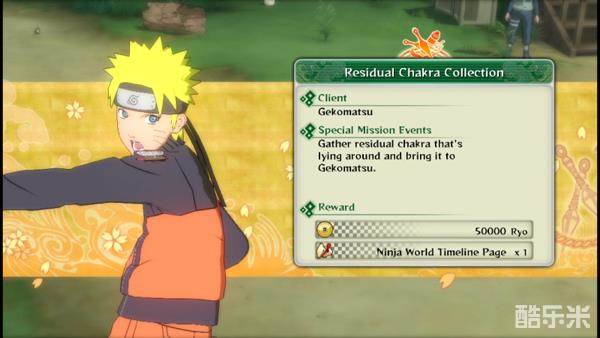 Step10:然后,小蛤蟆又再要求鸣人收集10000份蛤蟆石原料,我们只要找到一片查克拉碎片就额可以获得四代·波风水门,并完成了彩虹蛤蟆石,而同时,这个residual chakela collection任务亦全部完毕,在任务清单中显示忍者timeline会增加一页,也就是增加了兄弟共斗任务。