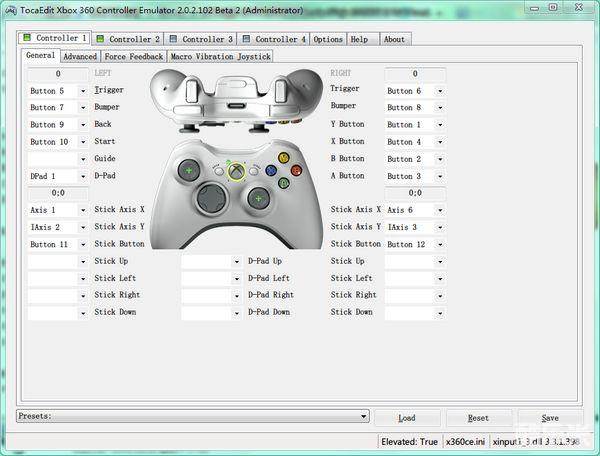 同样是用上面说的模拟软件,不过目前来看只能使用Motionjoy,方法也很简单,只要把其中杂牌手柄模拟成360手柄即可,方法同上,成功后在游戏键位设置中同样会识别成两个360手柄。
