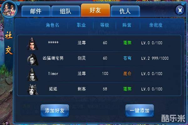 游戏中,社交系统分为邮件系统、组队系统、好友系统及仇人系统
