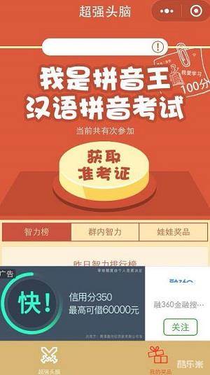 1、使用微信扫描页面上方二维码进入超强头脑小程序;