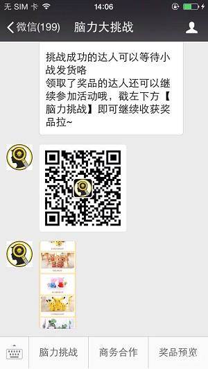 1微信搜索小程序名称即可进入小程序,或者扫描二维码关注脑力大挑战公众号后,点击脑力挑战后进入小程序。