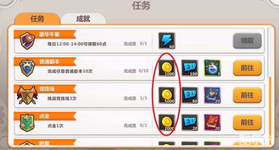 每次挑战普通副本或者精英副本都可以获得金币奖励,另外(下图):完成任意普通副本10次、挑战精英副本3次、点金一次等等还可以再次获得相应的奖励(能赚一点是一点嘛!)