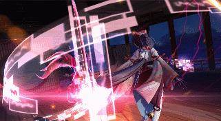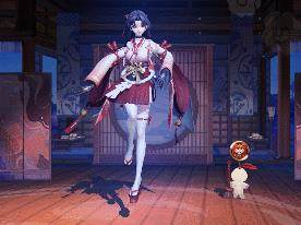 一阵强劲的刃风掠过,妖刀姬挥舞着御神之刃,行使着自己巫女的职责,衣摆的风铃也随之发出清脆的响声,仔细一看,下方还衔着一枚紫红色的平安符,为妖刀姬默默祈福。
