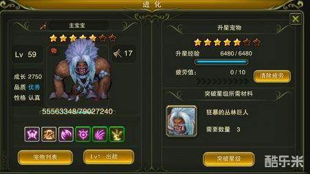 五星升至六星 进化升星经验:6480 所需升星材料:相同五星宠物三只