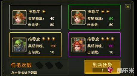 选择任务,尽量选择橙色获得150精魂的任务接取,共有三个选择,也可花100红开启一格,我开了感觉没用。