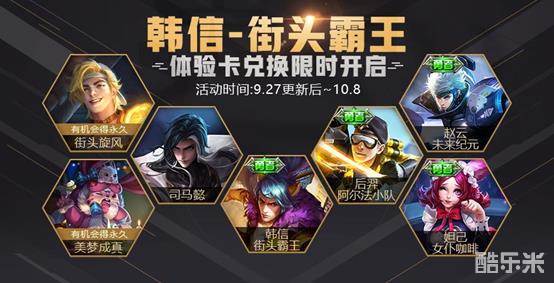 3) 9.27更新后-10.8体验卡兑换开启,韩信-街头霸王体验卡首次开启兑换