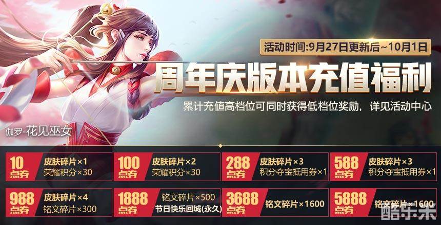 9月27日:铭文碎片*60+钻石夺宝抵用券*1