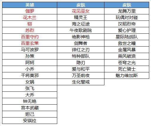 伊势巫女-大乔、隐刃-兰陵王、战争女神-雅典娜