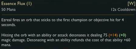 最重要的是,如果伊泽瑞尔是用技能引爆了标记,就会返还那个技能的法力值消耗,并且回复60点法力值。这是什么概念呢,伊泽瑞尔的W+E连招一共是50+90点法力值消耗,但如果你成功用E技能打出了标记的伤害,那么E技能的90点法力值能够返还,而且额外回60点法力值,等于是一套连招赚了10点法力值。这解决了伊泽瑞尔一直头疼的蓝耗问题,续航能力更强。