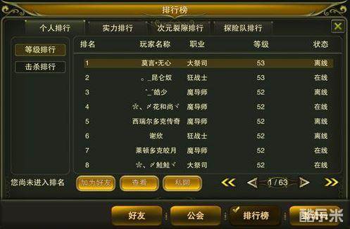排行榜分为个人排行、实力排行、次元裂隙排行以及探险队排行