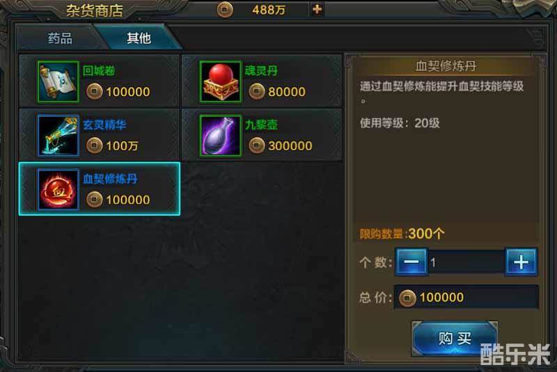 升级战魂血契需要用到血契修炼丹,血契修炼丹在群英会和四海八荒都有掉落,但是免费获得的血契修炼丹远远无法满足升级的需求,最主要的来源还是从铜钱杂货商店中购买。一颗血契修炼丹的花费是10万铜钱,而升级满四重天需要几亿铜钱。每升级一重天就可以多一只战魂的属性转化,多一只战魂对战斗力的提升非常大,所以应该尽快将战魂血契升上去。