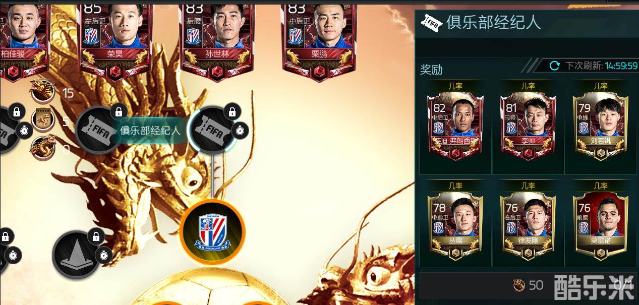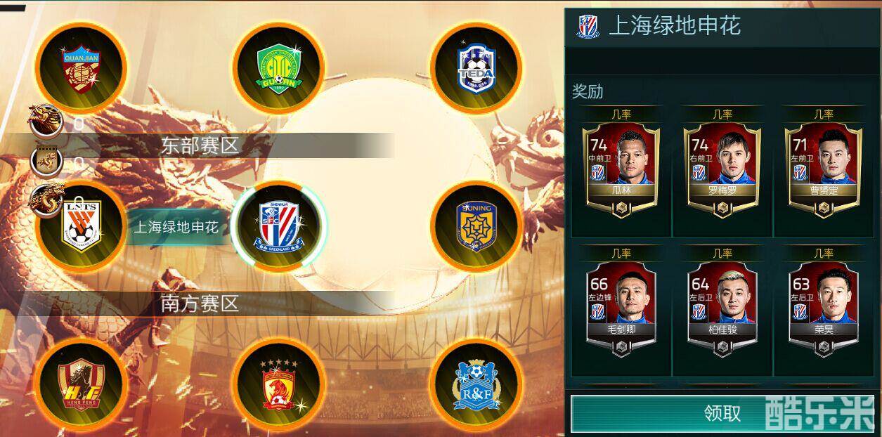 玩家可以任意选择1只球队参加中超群雄争霸活动,并能获得6名俱乐部球员,如选择上海申花,将会立即获得6名效力于上海申花的球员。