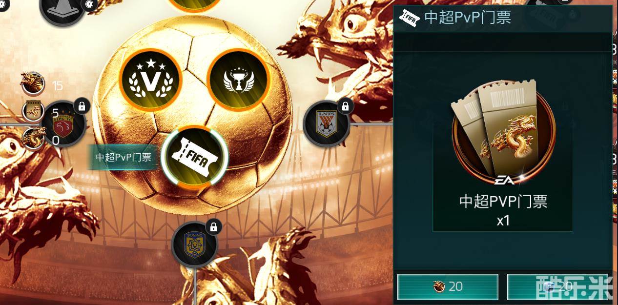 2.中超PVP门票:通过中超点数兑换或者挑战特殊关卡获得,用于进行实时对战以及进攻对战的中超PVP赛事,赢取中超PVP积分。