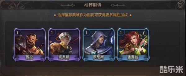 军团选择(副将)方面,前期也是使用蓝将升满星过度,后期切换紫色副将,在属性方面能给到不错的增益加成。副将实力:☆☆☆☆