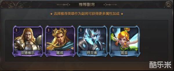 军团选择(副将)方面,前期也是使用蓝将升满星过度,后期切换紫色副将,在属性方面能给到不错的增益加成。副将实力:☆☆☆☆