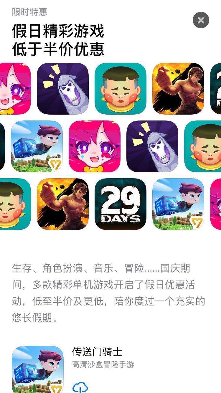 传送门骑士1.5新版本今日重磅发布,带你畅享绝美的沙盒世界。十一狂欢周线上福利蓄势待发,诸多精美周边好礼疯狂送,苹果商店限时优惠推荐现已开启,众多惊喜福利嗨翻天!