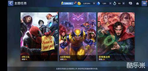 在“主题任务”中,已上线有至尊魔法师、X战警崛起、X特工队三条剧情线。除却能够免费获得强力英雄,更是可以在完成任务体验剧情的同时,享受英雄同步成长的乐趣。