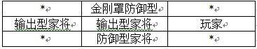 考虑玩家是防御与攻击综合能力较高,才如此布局。上路金刚罩家将需在两名敌人攻击下屹立不倒。中路三人则需面对,防御强的金轮大师和杀伤力大的暗影刀手,且必须以最快速度拿下。第三路家将控制对方宗师,以慢打慢,拿下后支援中路。