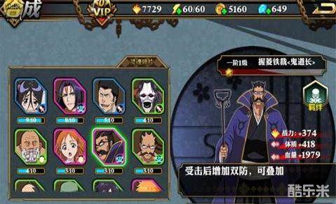 握菱铁裁鬼道长的初始属性是较不错一类的,对主角的体质和血量有一定加成,是一个实足的上血上限灵魂,握菱铁裁,一百多年前,为鬼道众队长,那时,和田玄钵还是他的副官,会使用缚道九十九级,来到现世后,在浦原喜助的商店寄宿并工作常常会拿一些奇怪的药给浦原喜助,使用性一般,平民玩家操作差可以培养,不推荐土豪培养。