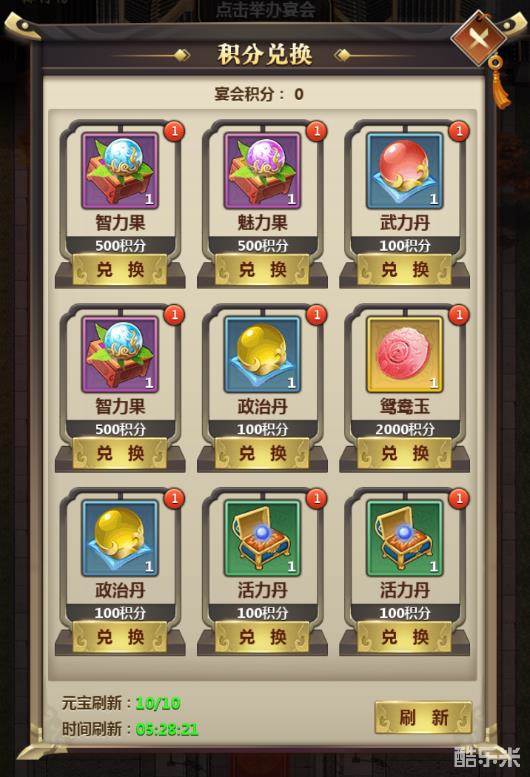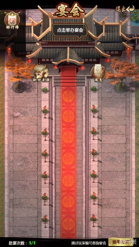 玩家可以举办宴会,宴请朋友,官人来参加宴席,参加宴席的朋友可以获得积分。