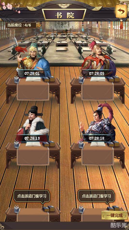 书院系统,可以通过派遣门客进行学习来获得门客技能经验,资质经验。