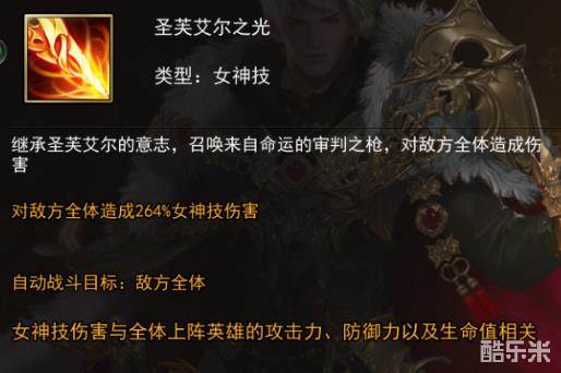 女神技:继承圣芙艾尔的意志,召唤来自命运的审判之枪,对敌方全体造成264%伤害。