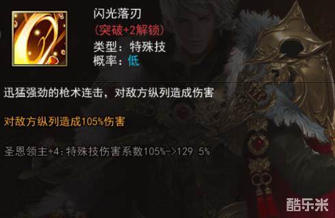 特殊技:迅猛强劲的枪术连击,对敌方纵列造成105%/129.5%伤害