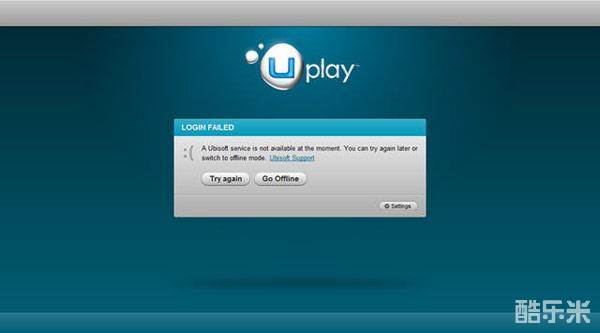 2、紧接着又有启动Uplay登录失败的问题,解决的方法最好是点击Try again重试,要是点击go offiline会导致无法进入游戏的。