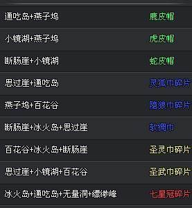 思过崖+小镜湖+百花谷=圣武巾碎片