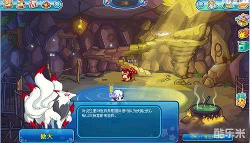 听闻后洞有九尾白狐出没,傲天为保护同族前来查探,小卡布赶快来帮忙吧!九尾白狐有着很大的灵气,十分稀有罕见,必能成为我们的强力伙伴,不容错过哦!狮驼洞中别有洞天,小卡布们快快去探索一下吧。