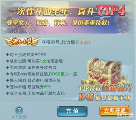 最后经济条件允许的朋友,最好能买一张钻石VIP卡,可以直接开启VIP4,VIP4除了有杀怪经验加成,还会解锁游戏内的魂魄汲取技能,累计杀怪经验就可以提升魂魄汲取技能增加的攻击力,是很强力的技能。并且VIP4玩家可以开启BOSS巢穴功能,能击杀更多的BOSS,获取更多的奖励。