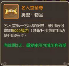 每日奖励除了按排名获得荣誉和铜币,第一名还能额外获得“名人堂至尊”的称号,次日即可领取。