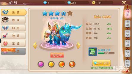 坐骑进阶需要坐骑成长书,进阶后可以提高坐骑属性