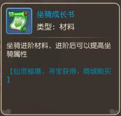 坐骑成长书可以通过仙灵秘境、寻宝获得,或者商城购买