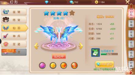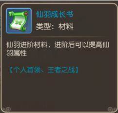 仙羽进阶需要仙羽成长书,进阶后可以提高仙羽的属性