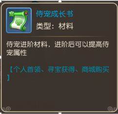 侍宠成长书可以通过挑战个人首领、寻宝获得,或者商城购买