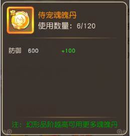 侍宠魂魄丹可以提升防御属性,最多使用120次(幻形品阶越高可用更多魂魄丹)