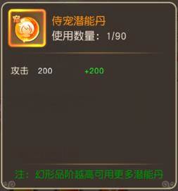 侍宠潜能丹可以提升攻击属性,最多使用90次(幻形品阶越高可用更多潜能丹)
