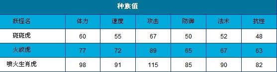 | 虎奔 | 28 | 火 | 技能 | 0 | 20 | 对手等级比自身等级越高,此攻击威力越大,最低70威力 |