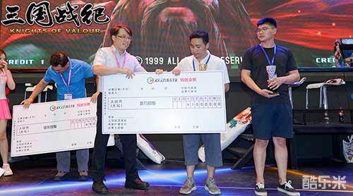 首届“极限竞技赛”总决赛于8月5日下午1:30分,在2018Chinajoy 欢动科技展台火爆上演。台湾鈊象电子IGS的姜伯威部长、副理刘国骏先生也亲自到场与玩家一起见证了冠军的诞生,并未冠、亚军颁发奖杯、奖金。最终通过三轮的激烈比拼,来自辽宁的玩家获得了首届冠军,获得了万元巨奖。