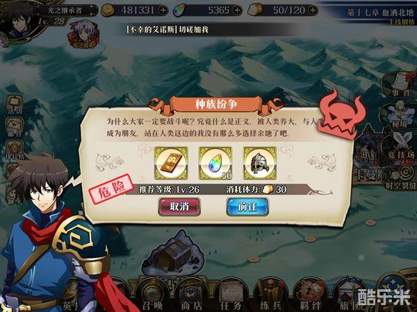 攻略:首先无视左右的步兵,向中央突破,利用枪兵的技能枪阵击破2队狼,然后再分兵两路,利用高机动的飞兵和骑兵击破左右的魔术师,杰西卡和雪莉走左路,马修和兰斯走右路,第四回合会有剧情提示,第五回合左侧法师会使用沉默迷雾,务必提前击破,注意骑兵要避开敌方枪兵,最后回到中央击破剩余敌人。